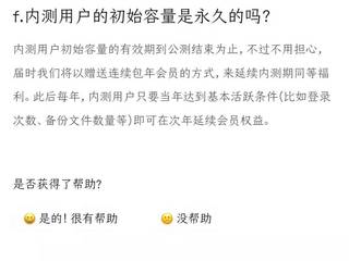 有很多小伙伴觉得昨天的扩容码不过瘾,今天又有一批扩容码来袭,有效期一年,不过呢根据阿里云盘的说法,目前还不确定收费方式,保持使用的活跃度可以赠送续费会员的活动继续免费使用 不过当你把云盘搞满之后总不至于给你删了吧,如果真的删了那阿里云的牌子就毁了,如果也像百度网盘那样搞限速那也是砸了自己的招牌,【不限速的招牌】如果真的这样说,那百度网盘死的可能性真的是牺牲用户体验死的。而从百度网盘或者其它网盘快速地迁移资源,相信也是阿里云盘正在考虑的事情。 其实这些回答都是给了阿里云盘很大的活动空间,不说别的就收费和容量这块搞的福利码扩容和内测用户的容量使用时间来说,模模糊糊,当真的收费模式出来之后真的可能会招来恶评,其实倒不如一开始就讲清楚,大家不至于有太多的期待。忙活了半天合着白忙活了 上云上阿里云 500G 扫地僧头发多 500G 戴老师爱较真 500G 巴巴带你扩容 500G 阿里云购爆款 500G 更多500G回复验证码获取 达摩院招保洁 500G 寄快递用裹裹 500G 发言人求来的 500G 发言人送你的 500G 许愿不要过气 500G 飞跃彩虹 320G 知识就是力量 200G 知识需要容量 200G 陈泥玛评测 200G yangyi 200G 天涯历知幸 200G 江宁婆婆 200G 科技中国 200G 手机中国 200G 资深盘友 200G 我爱爱范儿 200G 午后狂睡 200G 飞跃彩虹 322G 相关文章解决访问网站cloudflare验证一直通不过,人机验证无限循环TXT转电子书EPUB,MOBI,HTML格式用谷歌浏览器翻译excel时自动跳回原语言AI翻译excel 多表格做了个可以替换微信群二维码链接的网址,防止微信群二维码7天失效